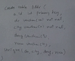 create table student( sno int primary key, sname varchar(50) not null, dept varchar(30), email varchar(50) unique, enter_date datetime default now());