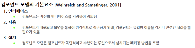 컴포넌트 모델의 기본 요소 세가지는 모두 알아야된다. 진하게 되어있는 세가지는 적어야된다.