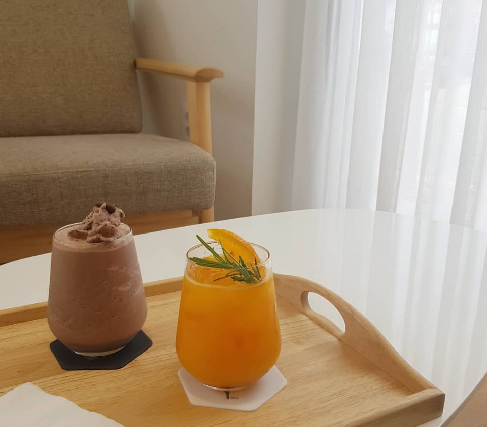 신선한 오렌지 쥬스와 달달한 자바 커피칩