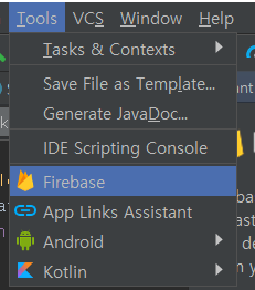 1. 상단 메뉴바 Tools에서 Firebase을 선택합니다.