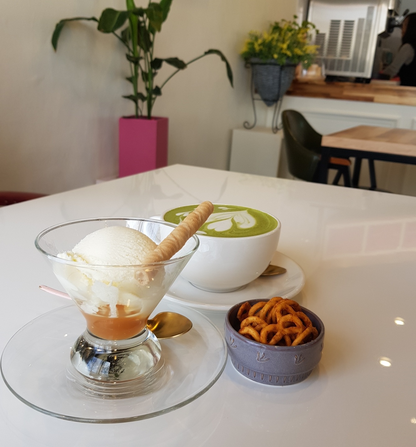 추추가) 엄마랑 코로나 막 퍼지기 전에 까페 가서 녹차라떼랑 아포가토 시켰다.