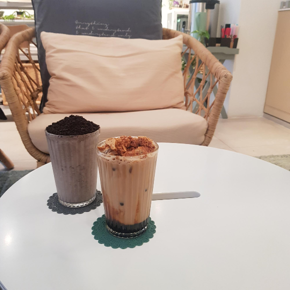 나는 달고나라떼를 시켰는데, 오. 성공적이였다.