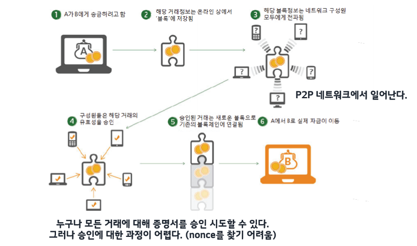 (3) 이중 지불 방지 : 작업 증명(proof-of-work)를 통해 암호화폐의 이중 지불을 방지한다.