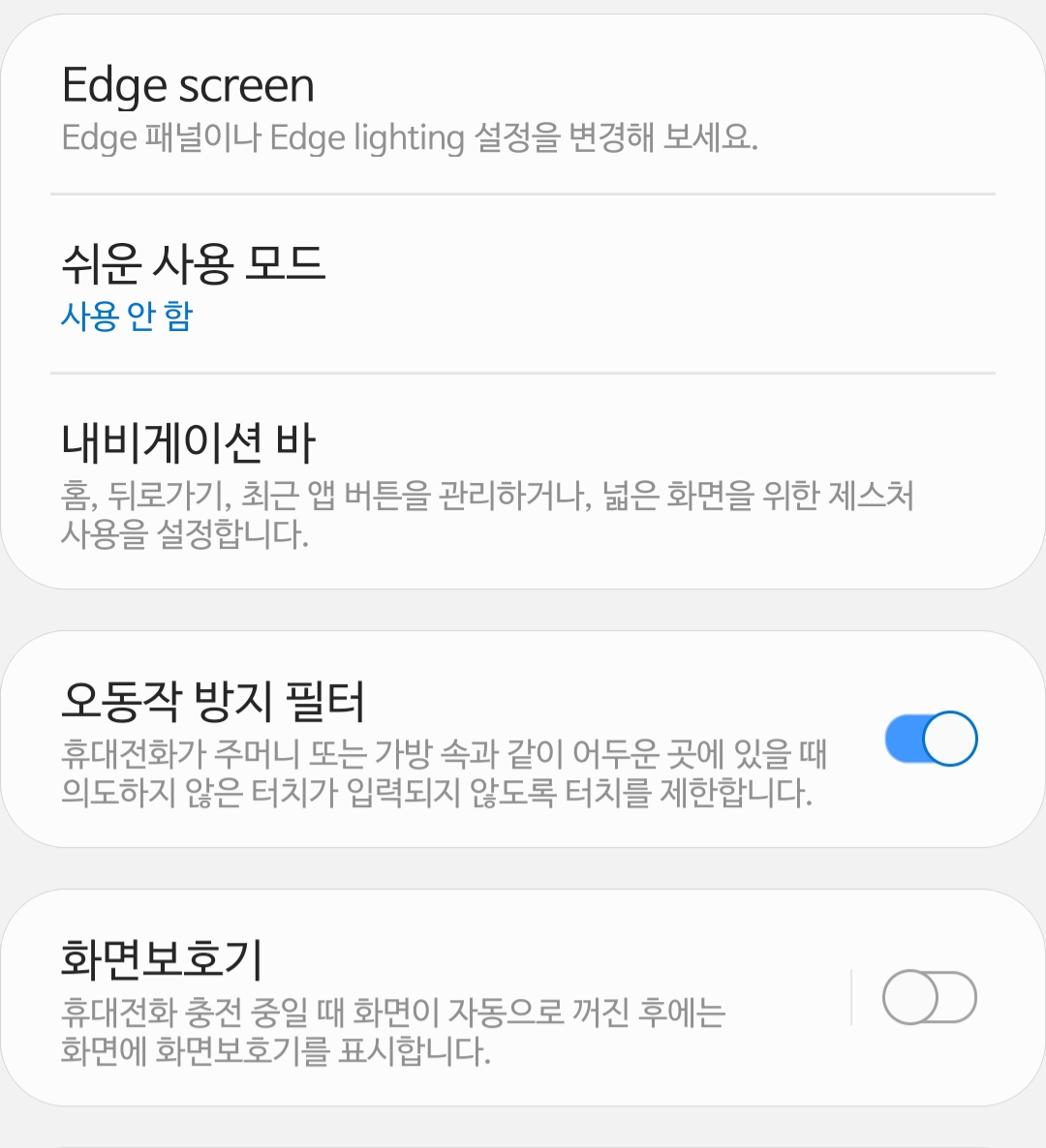 이것을 방지하기 위해서 삼성에서는 '오동작 방지 필터' 기능을 제공하고 있는데요.
