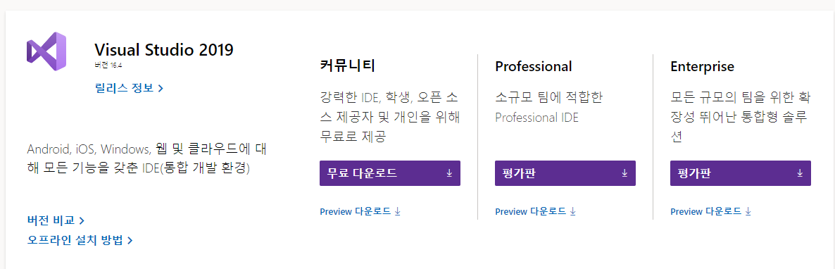 링크 : https://visualstudio.microsoft.com/ko/downloads/