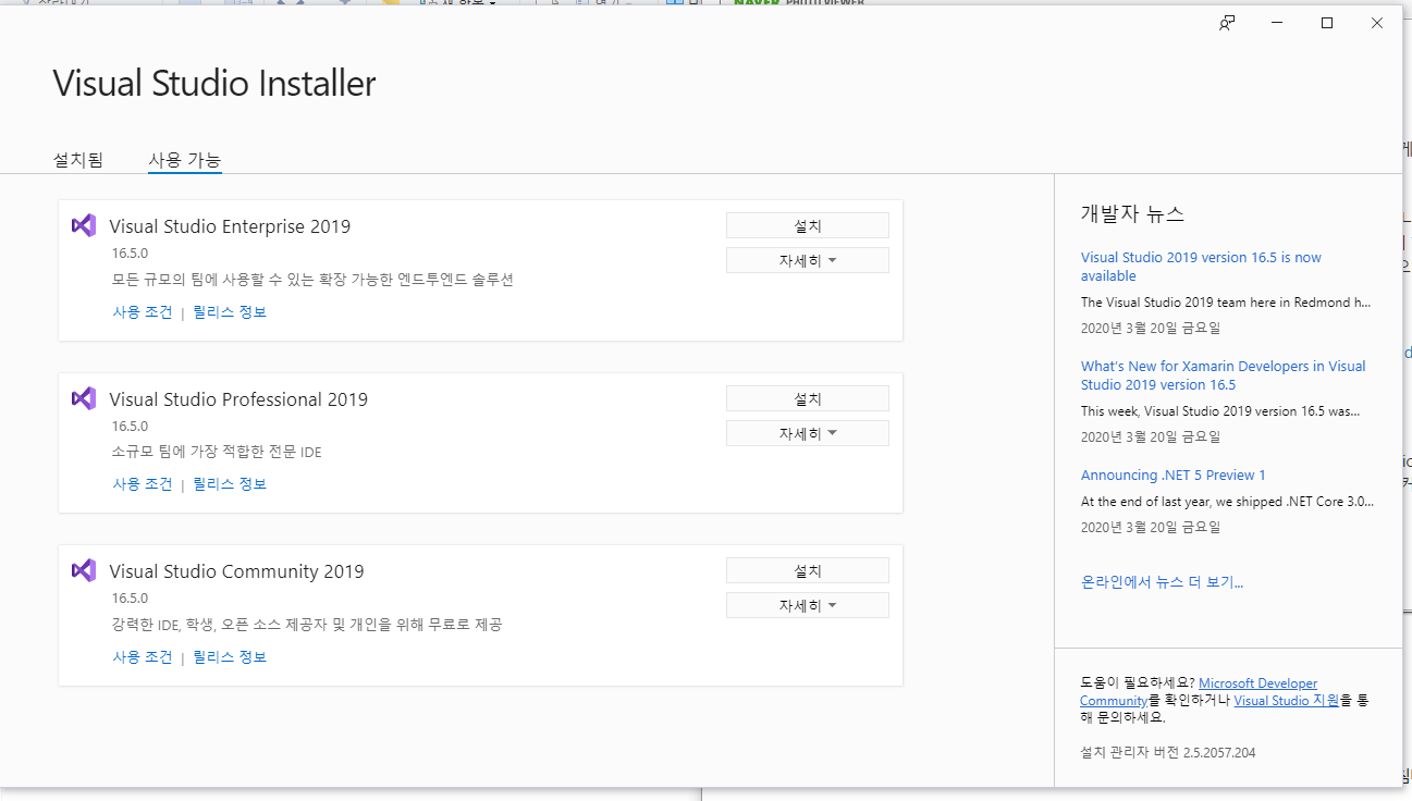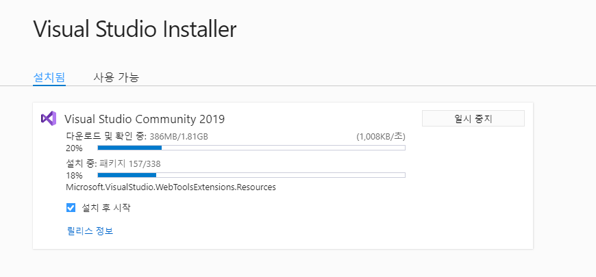 비쥬얼 스튜디오 설치하기
