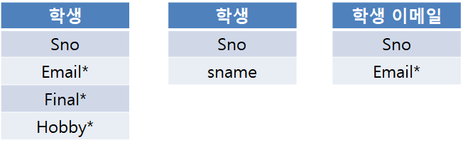 학생 개체 안에 email이 있는 데, 다중값 애트리뷰트라면 테이블을 만들 때 학생 테이블을 만들고 학생 email이라는 테이블을 만들어야 합니다.