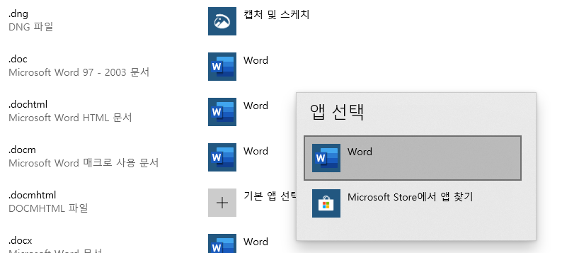 따라서 워드파일의 확장자인 .word 의 기본앱을 바꿔보려 합니다 :)