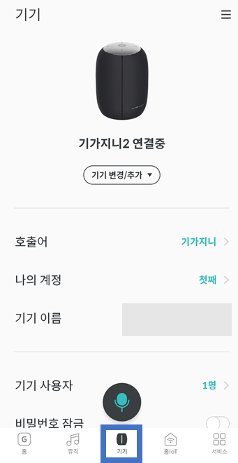 일단, 기가지니 홈에서 가운데 '기기' 메뉴로 이동합니다.