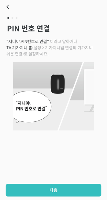 자, 이제 스마트폰과 기가지니 두 기기를 연동하려면 핀 번호(PIN)가 필요합니다.