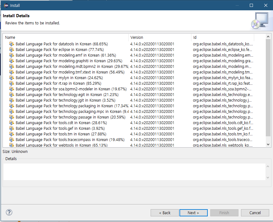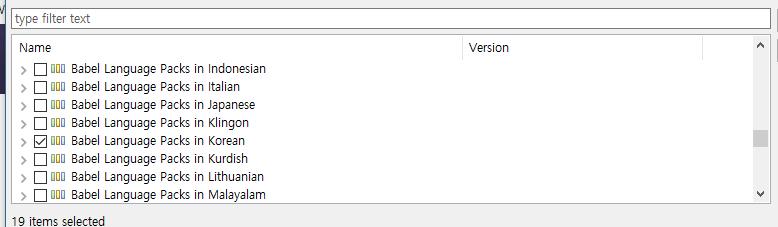 한국어팩만 설치할 것이므로 Babel Language Pack in Korean 에만 체크했습니다.