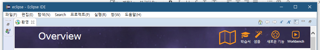 이클립스 메뉴 등 여러 부분이 한국어로 변경된 것을 볼 수 있습니다.