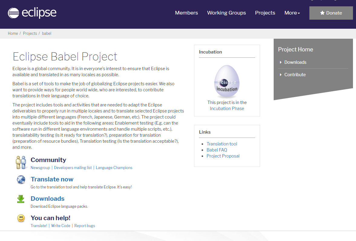 https://www.eclipse.org/babel/ 에서 Downloads를 클릭해 다운로드에 들어갑니다.