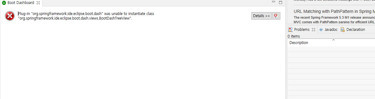 STS(Spring Tool Suite) 를 처음 Launch하게 되면 아래와 같은 오류가 발생합니다.