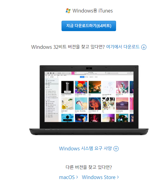 다운로드 링크 : https://www.apple.com/kr/itunes/download/