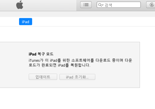 이후 천천히 기다리면 iPad 복구 소프트웨어가 다운로드되고, 복구 모드가 진행된다.