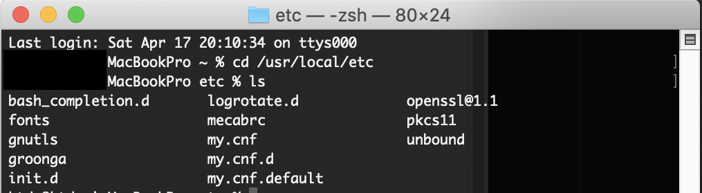 my.cnf를 변경하기 위해 /usr/local/etc 에 접근합니다.