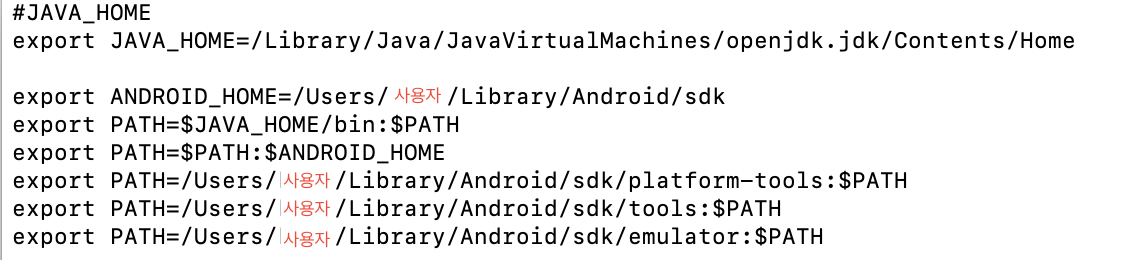 export ANDROID_HOME=/Users/이름/Library/Android/sdk