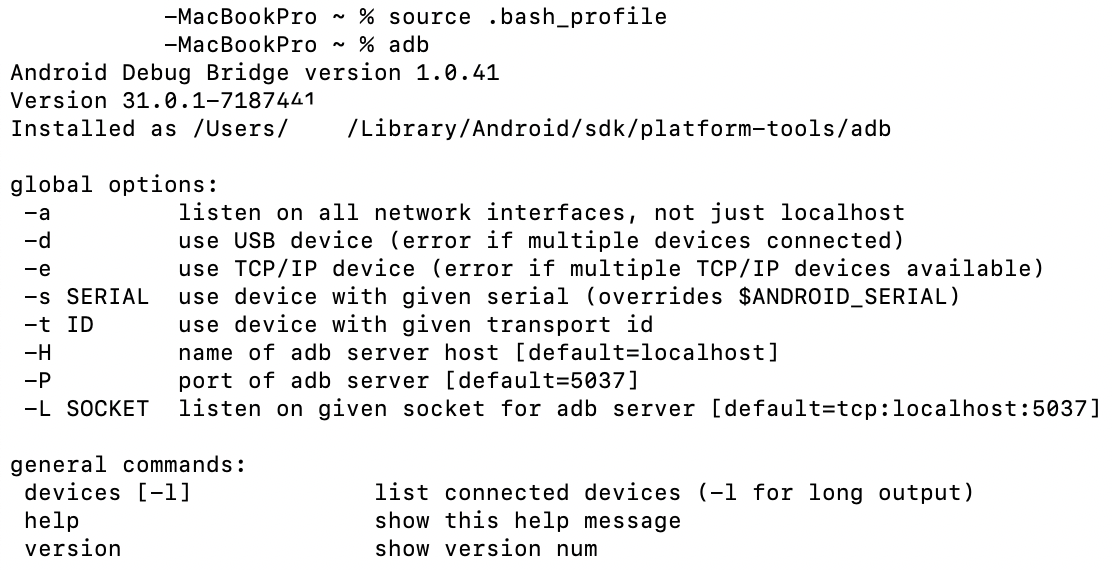 export PATH=/Users/이름/Library/Android/sdk/platform-tools:$PATH