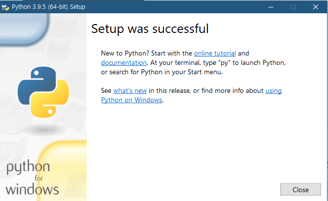 Window 검색 > Python 입력 > Python 3.9 가 정상적으로 설치되어 있음을 확인할 수 있습니다 .