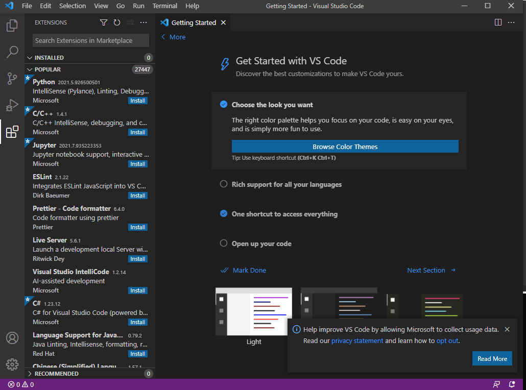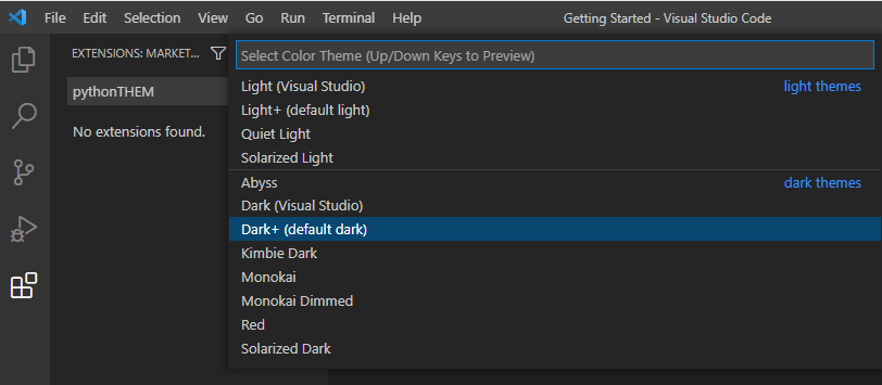 참고 : https://code.visualstudio.com/docs/getstarted/themes