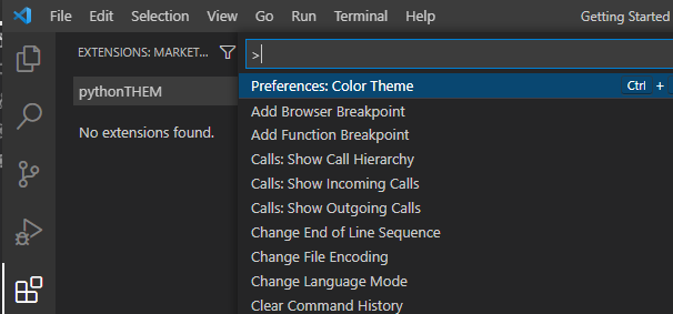 2. 검색창의 Prefereneces : Color Theme을 선택합니다.
