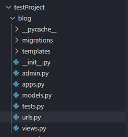 blog 앱을 생성했다면, 해당 디렉토리에 'blog'폴더가 생긴 것을 볼 수 있습니다.