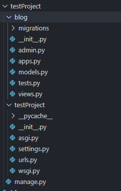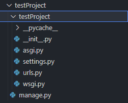 testProject라는 폴더와 manage.py파일이 생성된 것을 볼 수 있습니다.