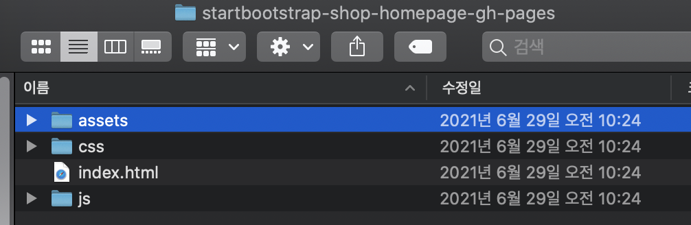 장고에서 css/js/img 같은 파일은 정적으로 분류하므로, static 폴더에 저장합니다. 다운 받은 bootstrap 템플릿의 assets/css/js폴더를 static 파일에 복사하세요 :D 이후 index.html은 templates 폴더 안에 덮어씁니다.