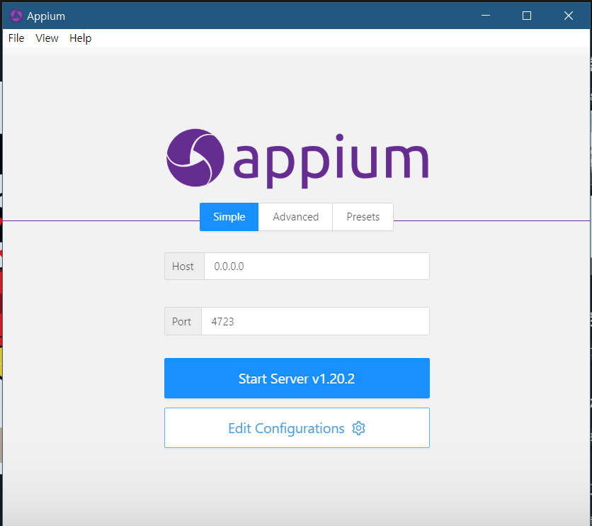 설치 후 아래와 같이 Appium을 실행시키고, Edit Configuration에서 JAVA/Andorid Path가 잡혀있지 않다면 추가해줍니다.