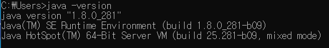 CMD창에 JAVA 버전 확인이 되면 설치 및 환경 변수 설정 완료입니다.