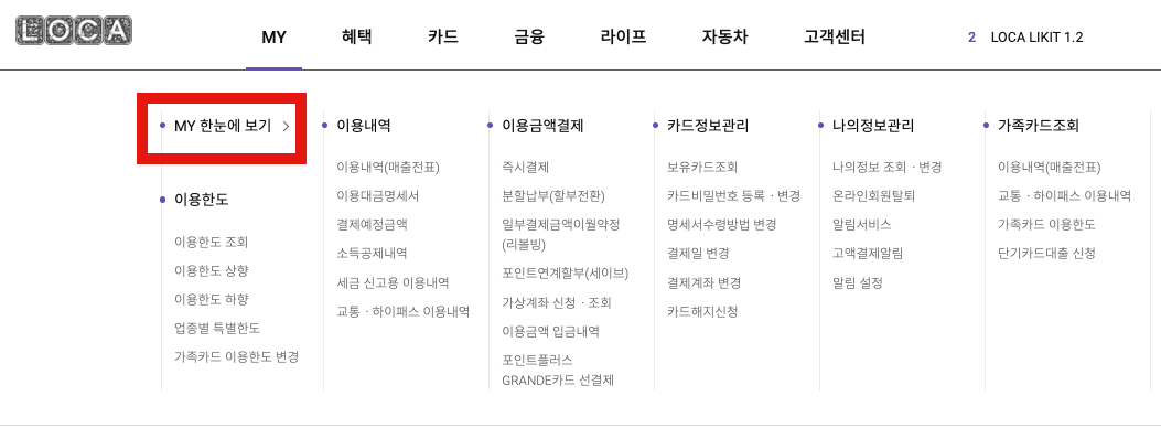 상단 'MY' 메뉴에서 'MY 한눈에 보기'를 클릭합니다.